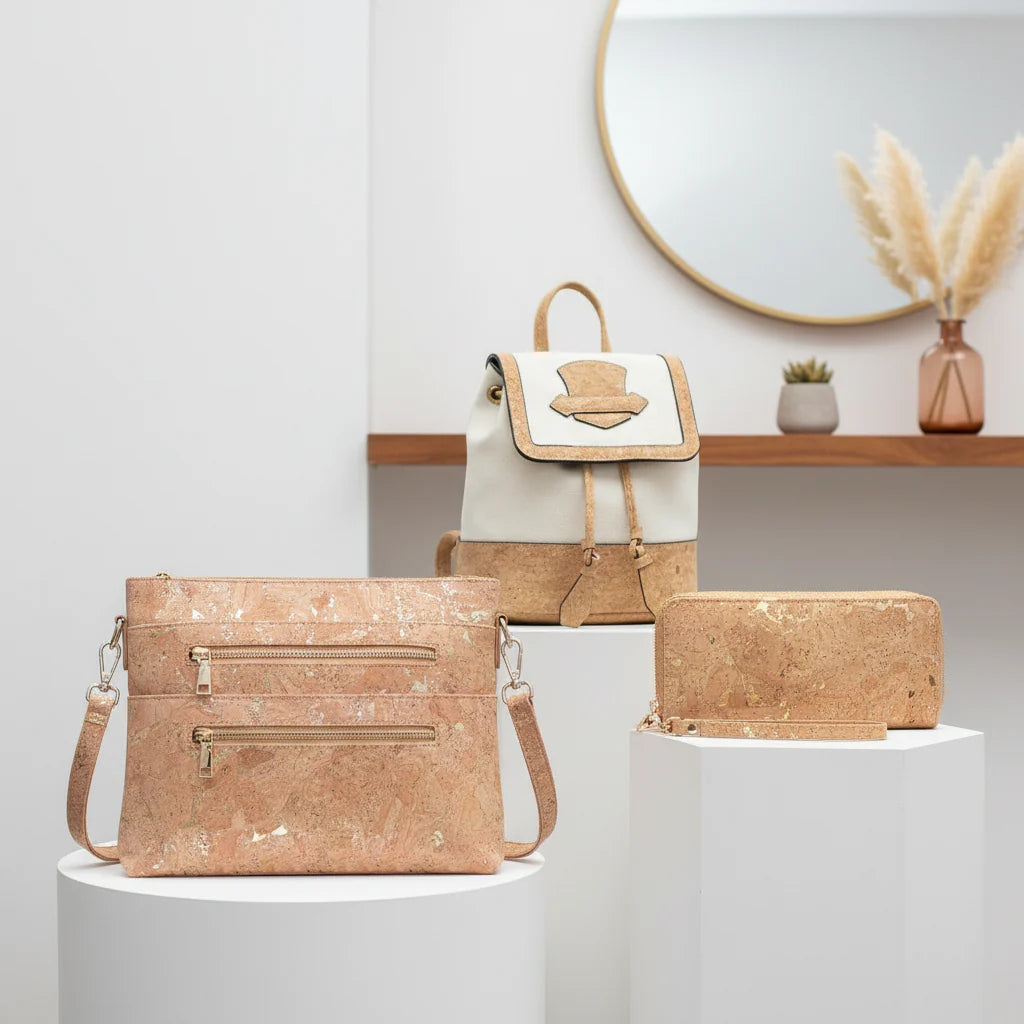 Premium natural cork crossbody bag front view Cork shoulder bag in nature