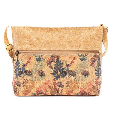 - A stylish and spacious cork shoulder bag designed for everyday convenience. Featuring a nature-inspired floral print on the front and a tapered top for a modern look, this lightweight bag keeps essentials secure and organized without sacrificing comfort. The adjustable strap offers flexibility as a shoulder or crossbody style.